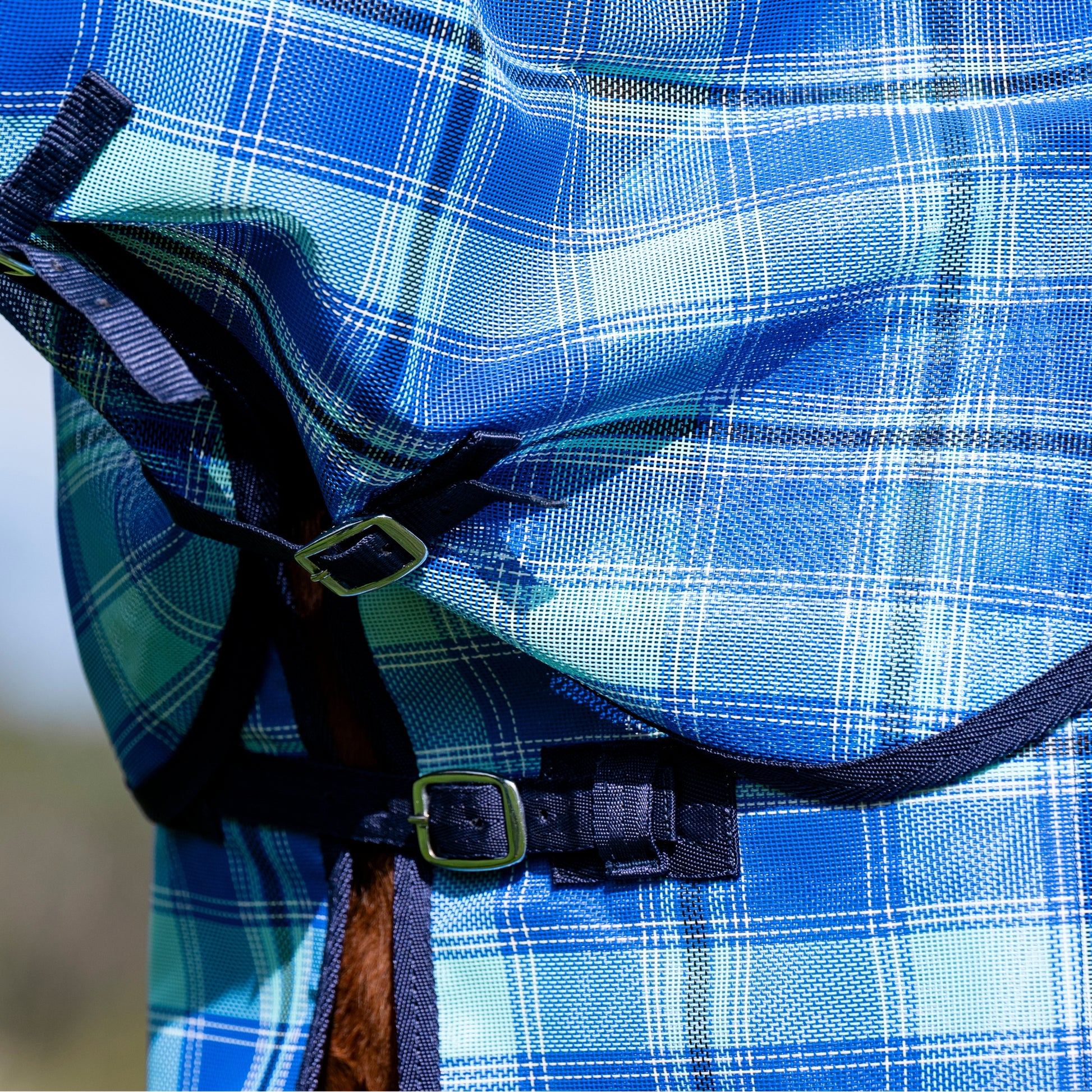 With a double chest strap, buckle neck closure, and leg straps, it stays secure while allowing freedom of movement. A practical choice for horses needing a no-fuss, hard-wearing rug.