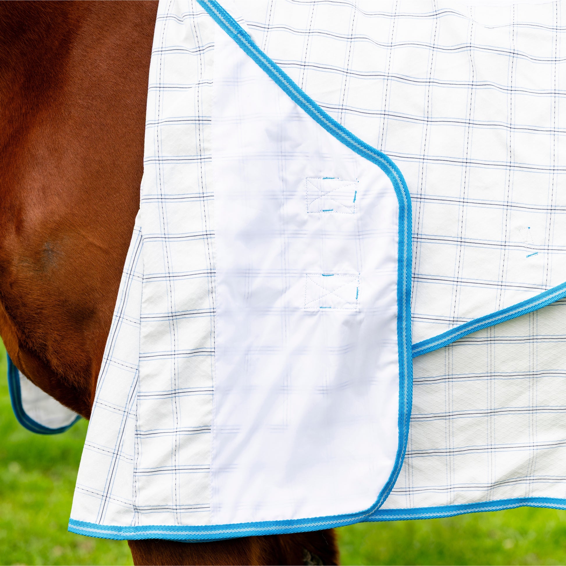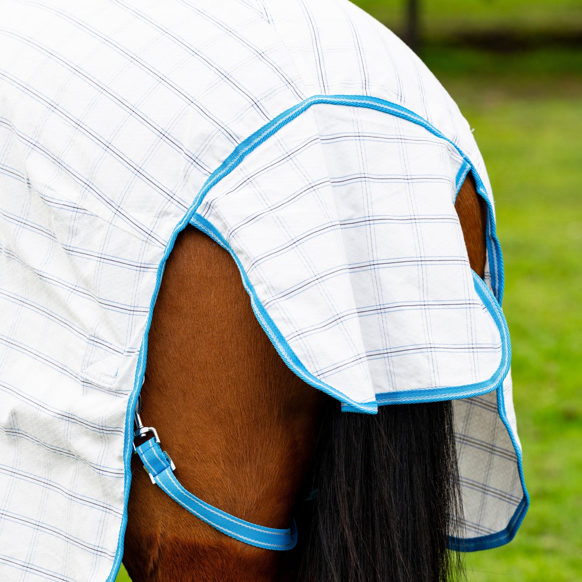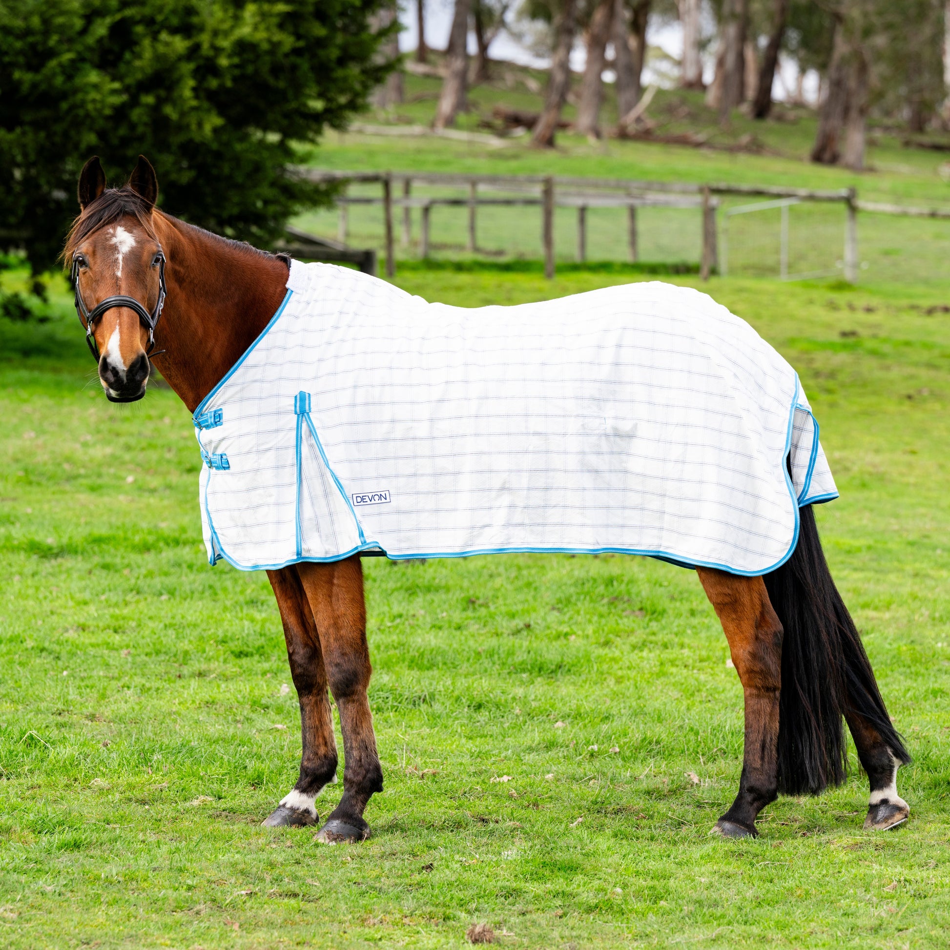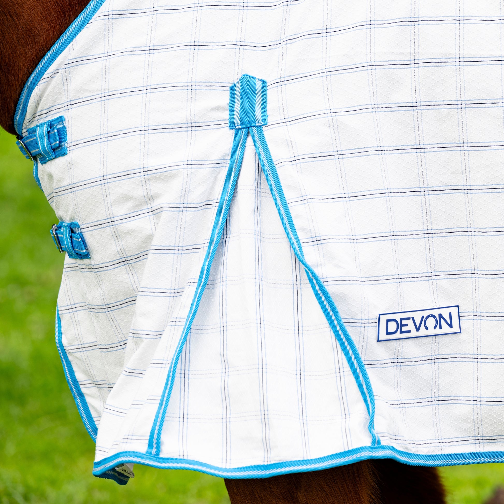 Economy style of our Devon Summer Range, featuring a 100% polyester ripstop fabric, fleece wither protection, double chest straps, removable leg straps and a large tail flap.