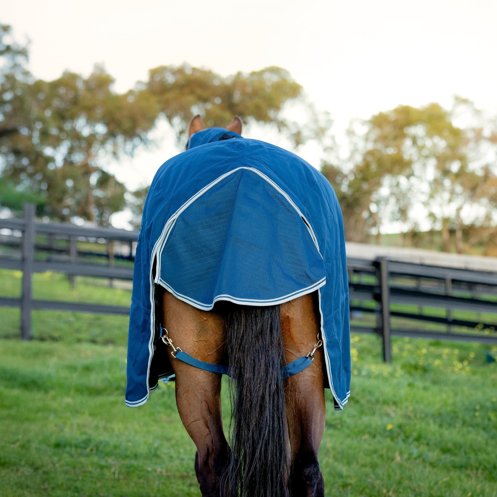 The EQ Armour Ascent features a double front closure, combined with crisscross belly surcingle's and nylon/elastic leg straps ensuring that you can provide your horse with a secure, adjustable fit. Generous shoulder gussets give your horse the room he needs to move freely and comfortably, and an integrated tent tail flap provides additional protection from wind, rain and cold weather.