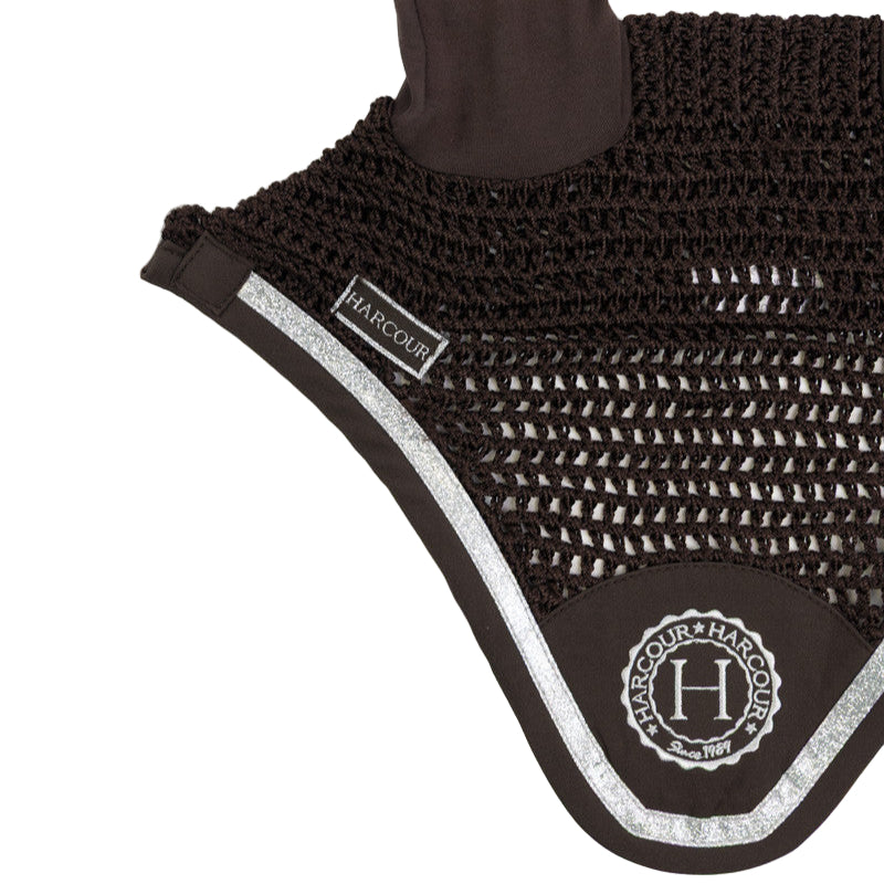 Finished with a flat glittery edge for a touch of sparkle, the Harcour logo embroidered on the front, and a woven logo on the side, this flyveil pairs perfectly with the Karembor Saddle Mat for a matching set.