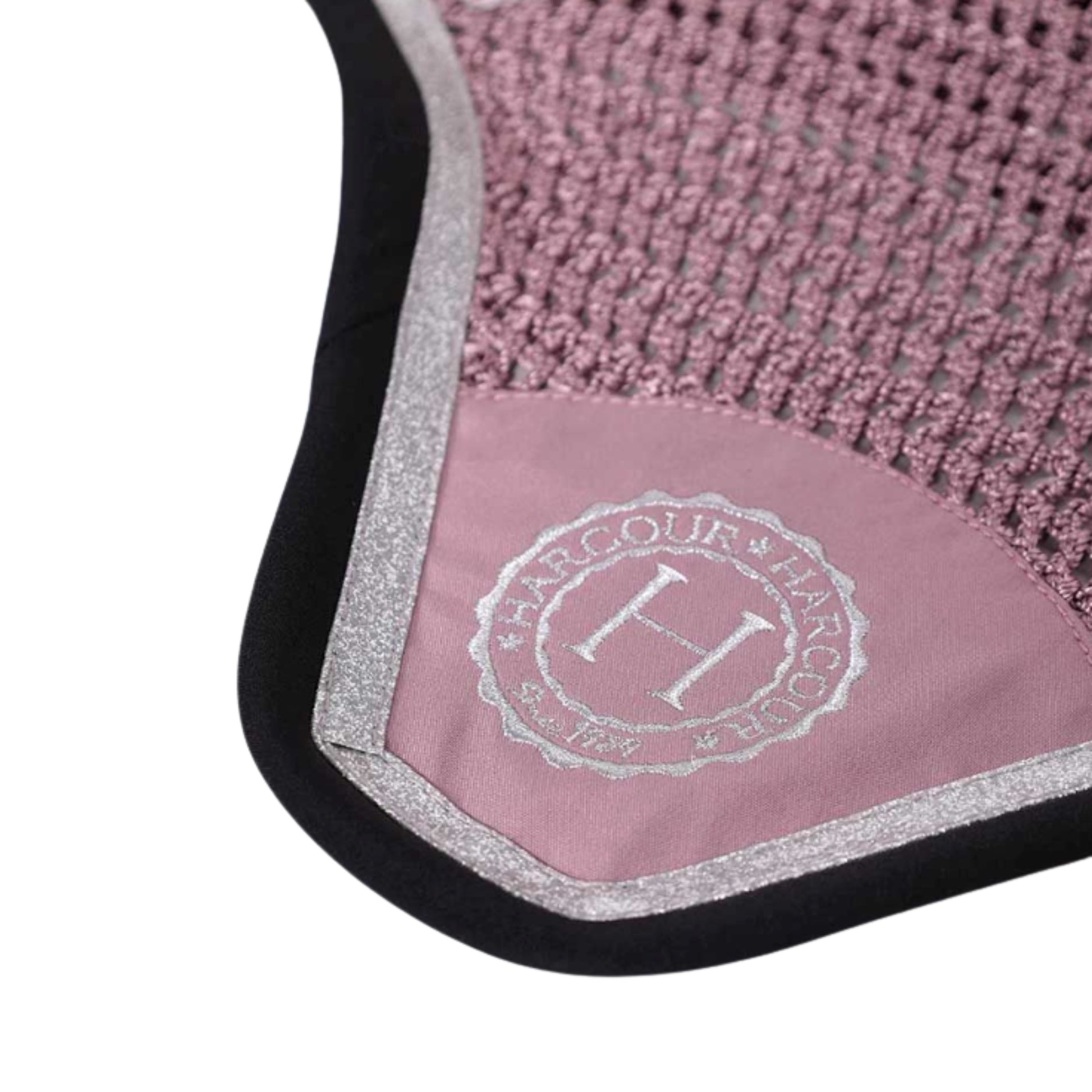 Finished with a flat glittery edge for a touch of sparkle, the Harcour logo embroidered on the front, and a woven logo on the side, this flyveil pairs perfectly with the Karembor Saddle Mat for a matching set.