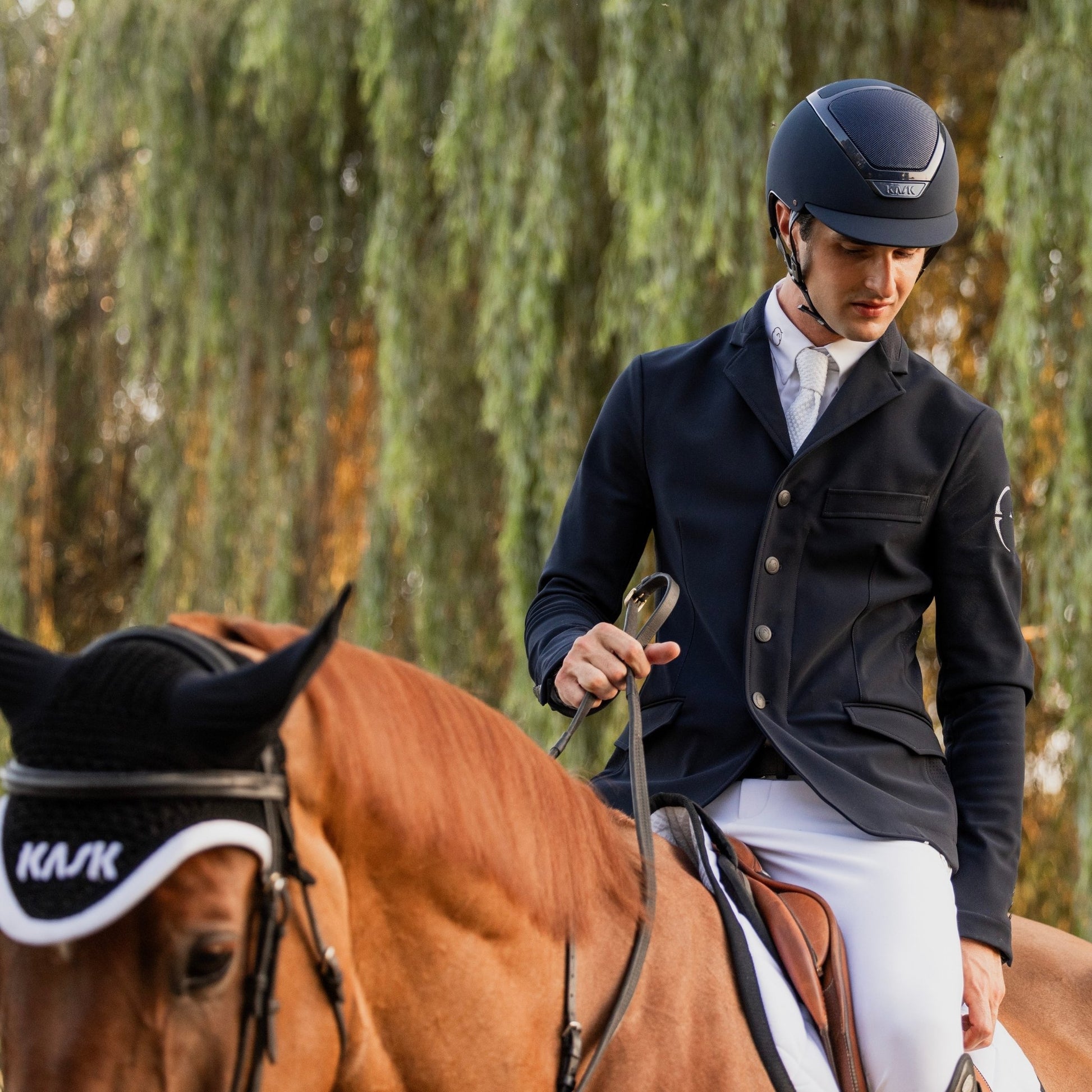 The KASK Dogma Chrome helmet delivers a bold combination of modern style, dependable safety, and exceptional comfort, offering riders a standout look while maintaining high-level technical performance during every ride with a horse, from training to competition.