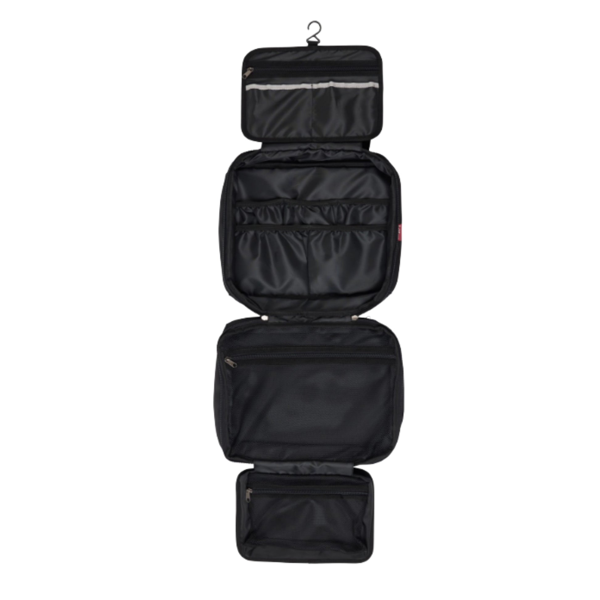 Designed for practicality, this versatile organizer unzips and unfolds to reveal multiple pockets and compartments, keeping brushes, sprays, and accessories neat and accessible. Featuring a convenient hanging hook and grab handle, it’s perfect for hanging in the stable or tack room — then zipping up and taking with you wherever your horse adventures lead.