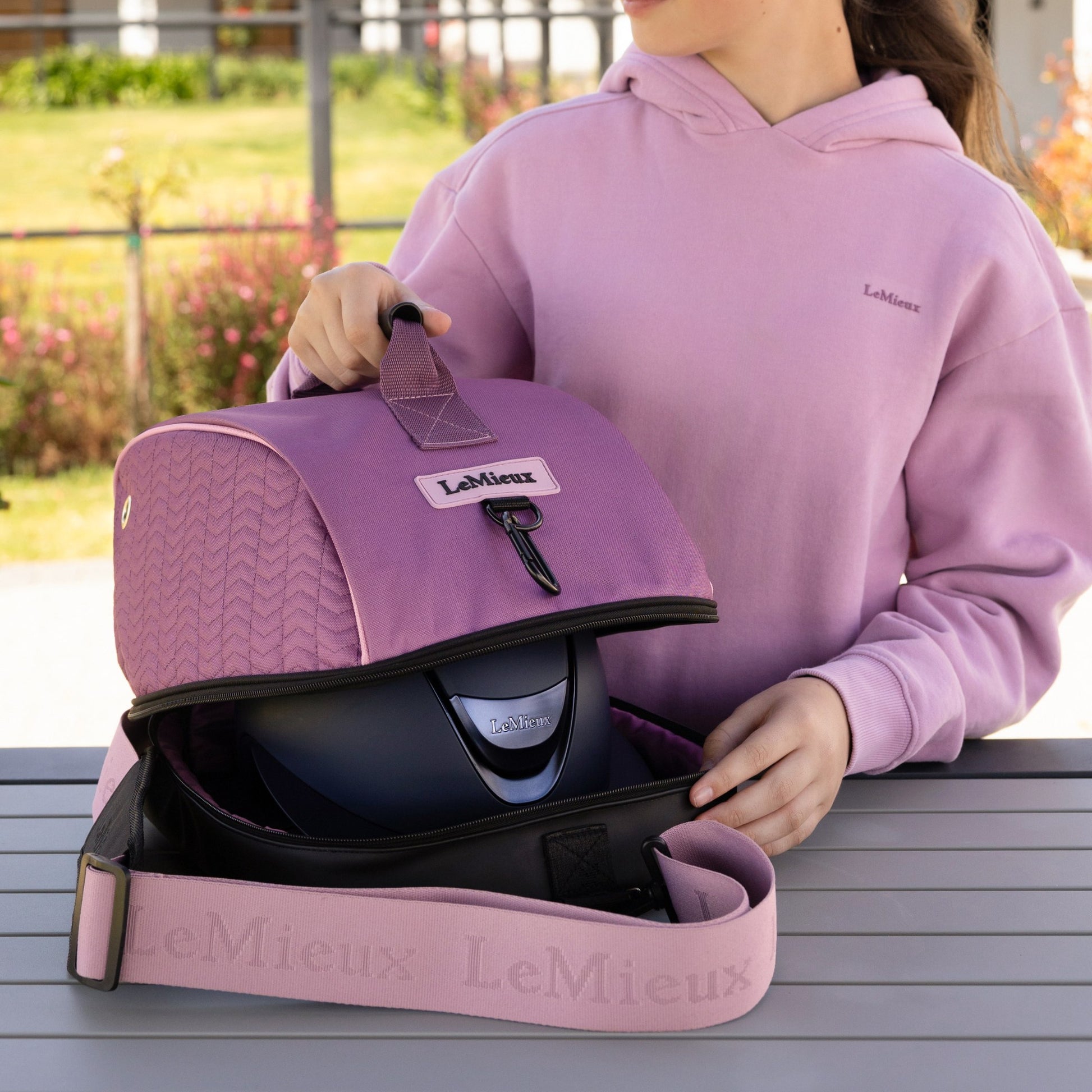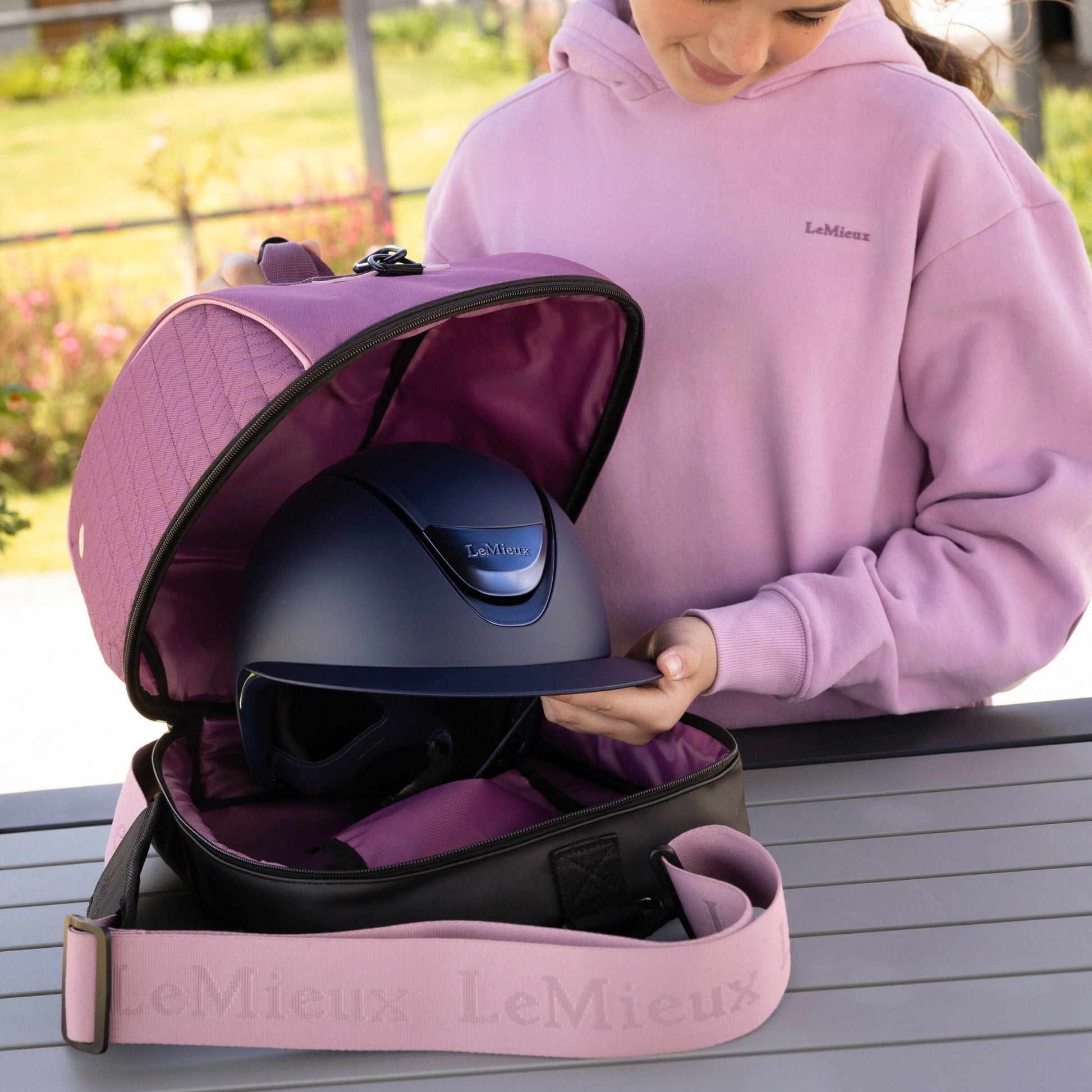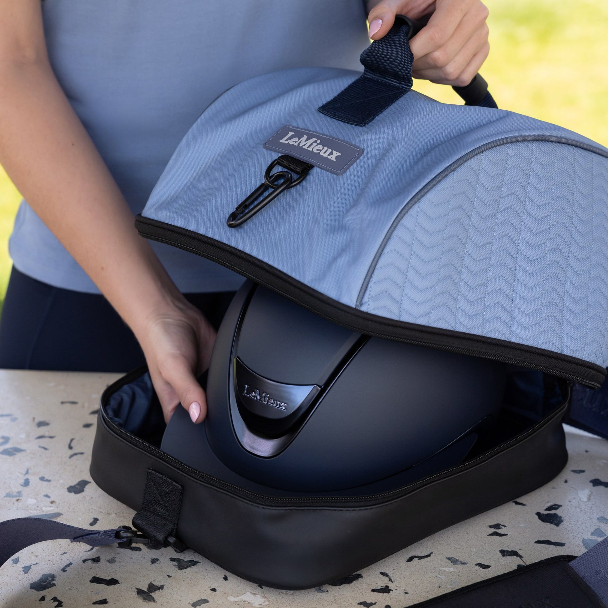A protective storage solution designed to keep a Horse riding helmet clean and secure during travel and competition days. Durable construction and practical compartments make it ideal for events and storage.