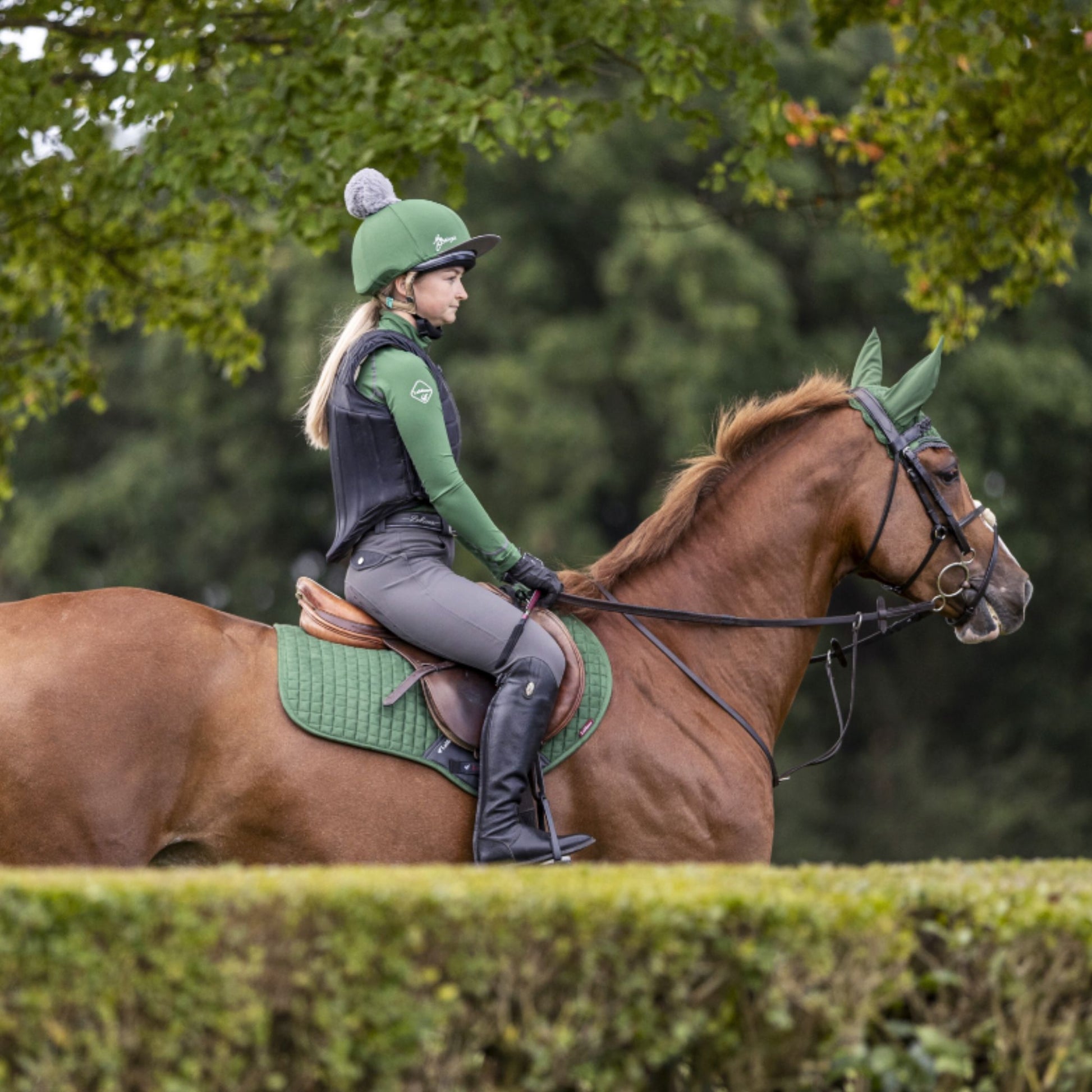 The luxurious yet easy-care suede-effect upper is perfect for everyday occasions. It is finished with smart LeMieux-branded spine tape, while contoured friction-free binding prevents misshaping. Our signature breathable natural bamboo blend lining absorbs and controls sweat under the saddle and is naturally antistatic, antimicrobial, and quick-drying. It's also beautifully comfortable and secure, minimising friction even on sensitive-skinned horses.