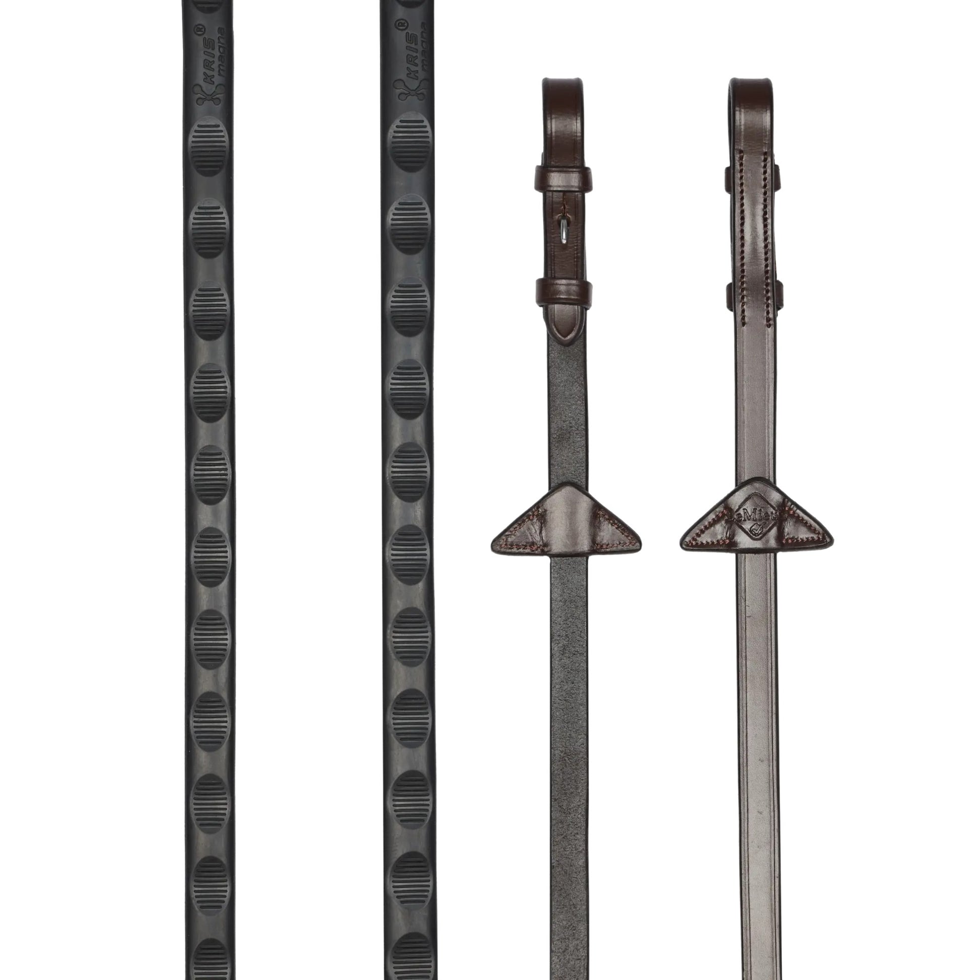 Features: - Textured Rubber Overlay For Enhanced Grip - Thumb-Shaped Grip Pattern For Secure Hold - Straight Rein Design - Nylon Lined Leather To Prevent Stretching And Breaking - Signature LeMieux Stamped Leather Martingale Stops - Buckle Bit Attachments - Designed For All-Weather Performance