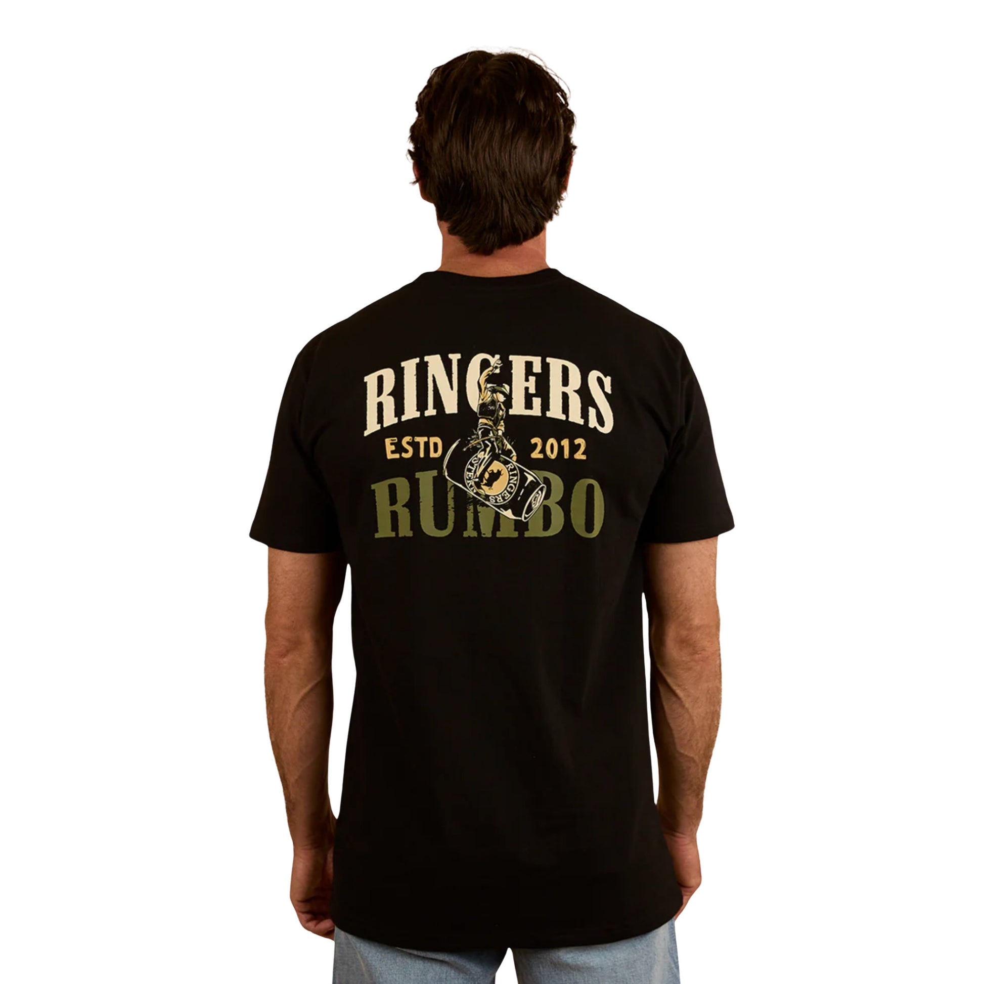 The Ainβt My First Rumbo Stock Fit T-Shirt is tough, comfortable, and built to last. Made from heavyweight cotton jersey, it offers softness, breathability, and durability with a relaxed stock fit. Finished with bold Ringers graphics on the chest and back, this tee is a true western essential for horse riders who live life to the fullest.